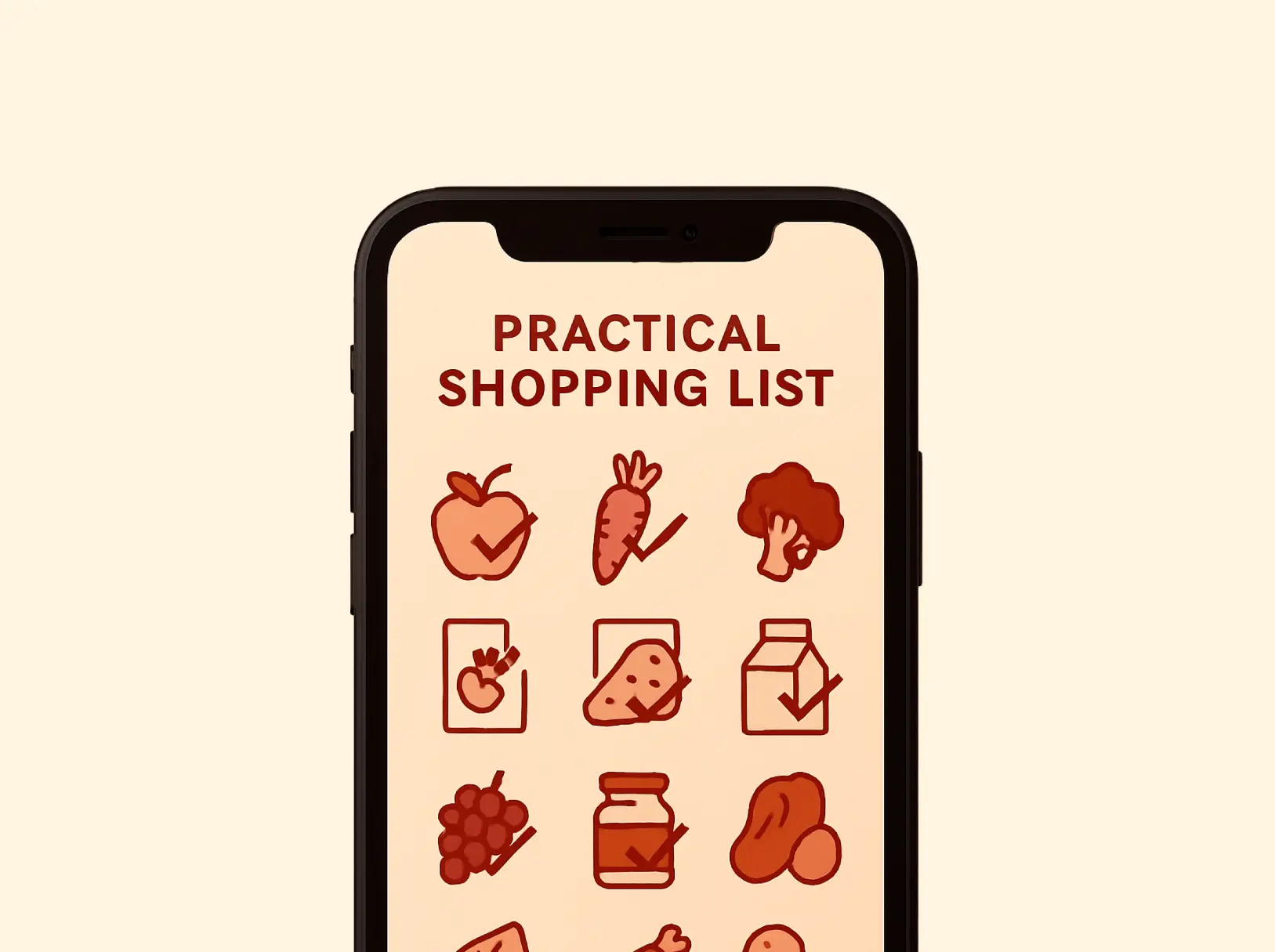 Uma lista digital e impressa para facilitar a hora de fazer compras no mercado.